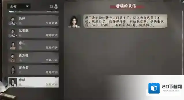 出现江湖故事:入门初窥暗器之道,跟随指引完成任务后加入