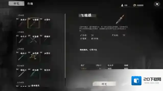 三种属性只需要在铁匠铺购买矿石然后一直打造飞蝗镖刷属性到可以研发下一阶暗器晋升身份
