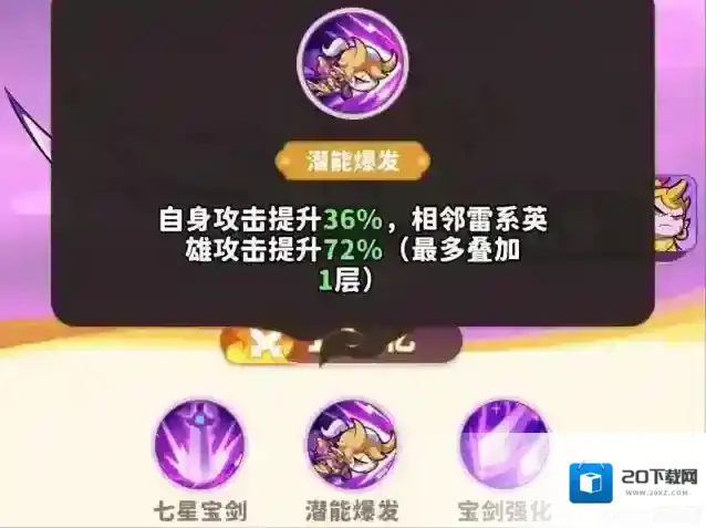 在宝剑强化的被动作用下,七星宝剑变为每次召唤2把,伤害变为150%,大幅增强了宝剑所能造成的伤害,使得剑仙清小怪速度很快。而且剑仙的潜能爆发能大幅提升自身和相邻雷系英雄的攻击力,对自身提升36%,对相邻提升72%。