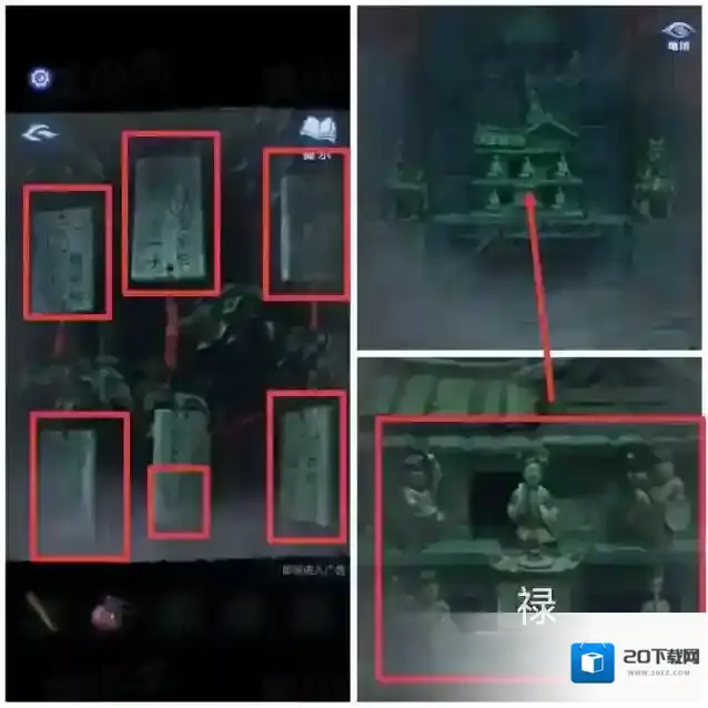9.点击屋子模型,根据[纸人庙]场景许愿牌线索, 调整对应位置上的陶人和石块上的字为禄