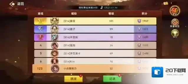 5、锦标赛这一块每天看着打,我们不是氪金玩家,肯定是比不过的,重在参与,顺便白嫖一下荣誉勋章,后续就可以去商店兑换衣服宝物和神话装备,公测的时候尽量攒着去兑换衣服宝物,因为装备这一块能刷,衣服宝物刷不到!