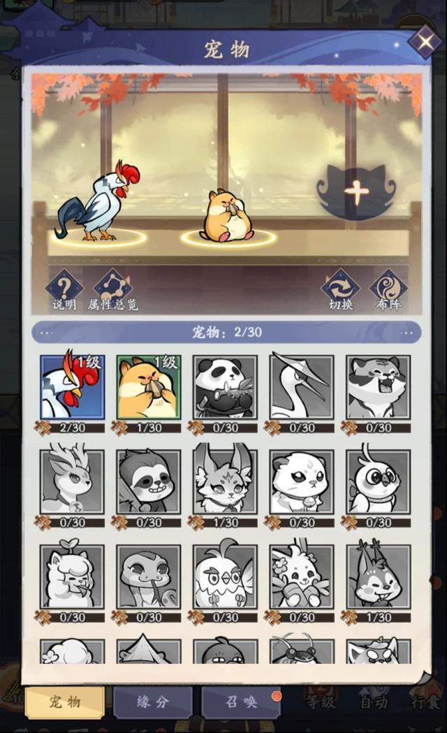 此外,不同宠物之间还可以组成不同的宠物缘分,为大人提供各项基础属性加成。
