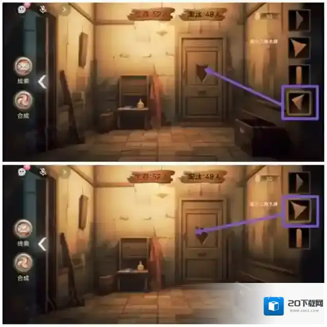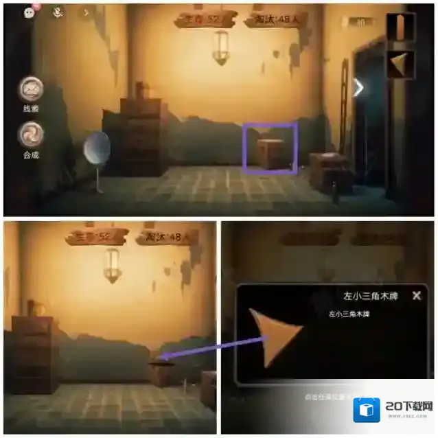 3.点击地上的箱子,根据上面的提示,结合男主那边的时钟上的线索,输入密码:1025;打开箱子,获得右小三角木牌