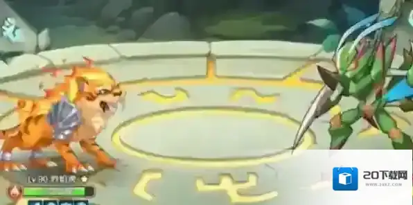 4、最后派出携带“战意Ⅱ”和“聚气”的烈焰虎,伤害加成效果叠满后,使用“闪焰獠牙Ⅲ”并衔接绝技击败烈锯螳螂即可。