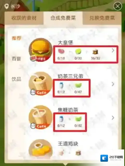 8、收集到足够食材就可以去厨房合成免费菜然后兑换免费菜,兑换完就可以去当地相关店铺免费兑换食物了。