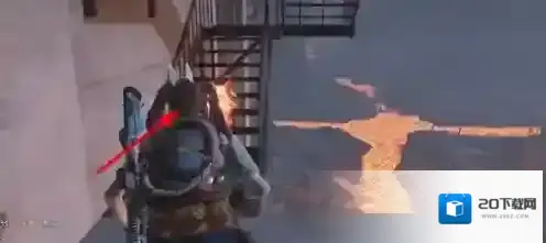 4、到达后,在左侧平台上您会看到一个梯子,爬上去即可。