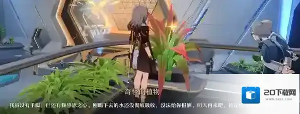 来到基座舱段第二层右侧,选择给奇怪的植物浇水