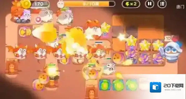 10、最后一波是关键,中间继续添加保龄球,右上角可以添加星星,应对飞到上方的兔子。