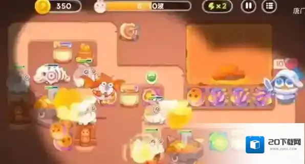3、第三波在中间灯两边放上火瓶,注意及时升级瓶子炮和火箭。