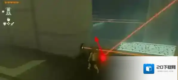 来到上层后继续向左走,等下方敌人看向其他方向后使用滑翔伞向左飘过转角。
