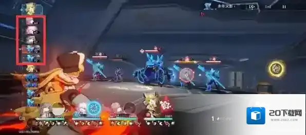 这里可以很明确地看到,这两只小怪因为被破盾而减速,基本在我角色之后了(虎克速度太慢了,泪目)这意味着我们获得了出手权利,还不用担心被小怪减速,因为冰胖会帮我们处理所有小怪的,这个回合打冰胖就行了。