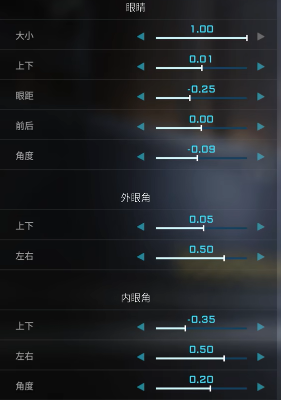 眼睛1,具体数据如下图所示