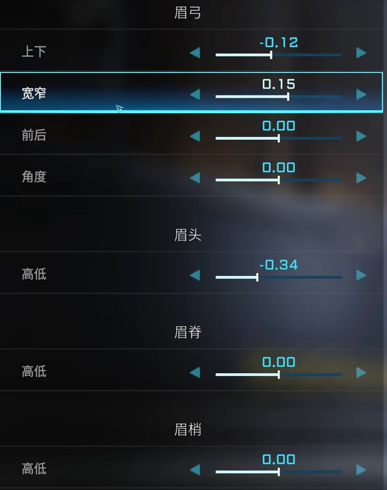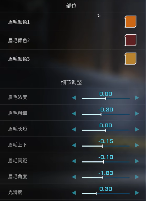 眉毛3,具体数据如下图所示