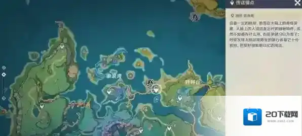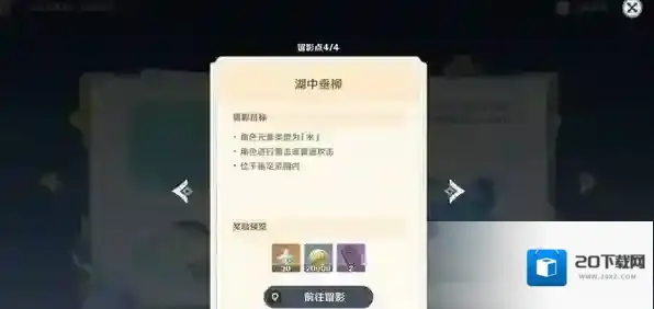 1、同样在活动页面查看详情,选择留影点湖中垂柳,点击放大镜并传送到附近锚点。