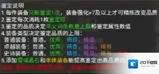 (2)鉴定装备品质决定了淬火词条数量上限和鉴定属性数值: