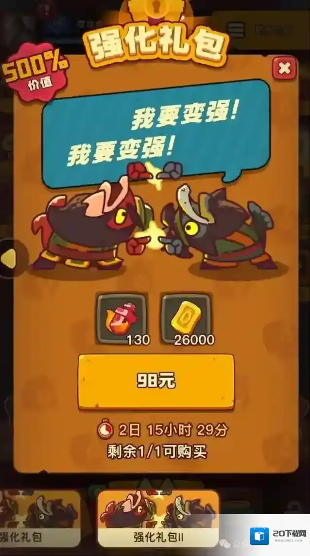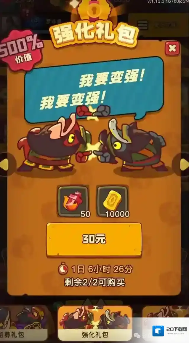 第三个和第四个的强化礼包性价比极高,是纯粹的神话水,游戏内最重要的东西就是神话咸将的星级,尤其是几位代表人物:孙坚,关羽,孙策,华佗,每一个12星所需要的神话水都非常多,所以如果有预算的朋友这两个礼包极推荐氪。
