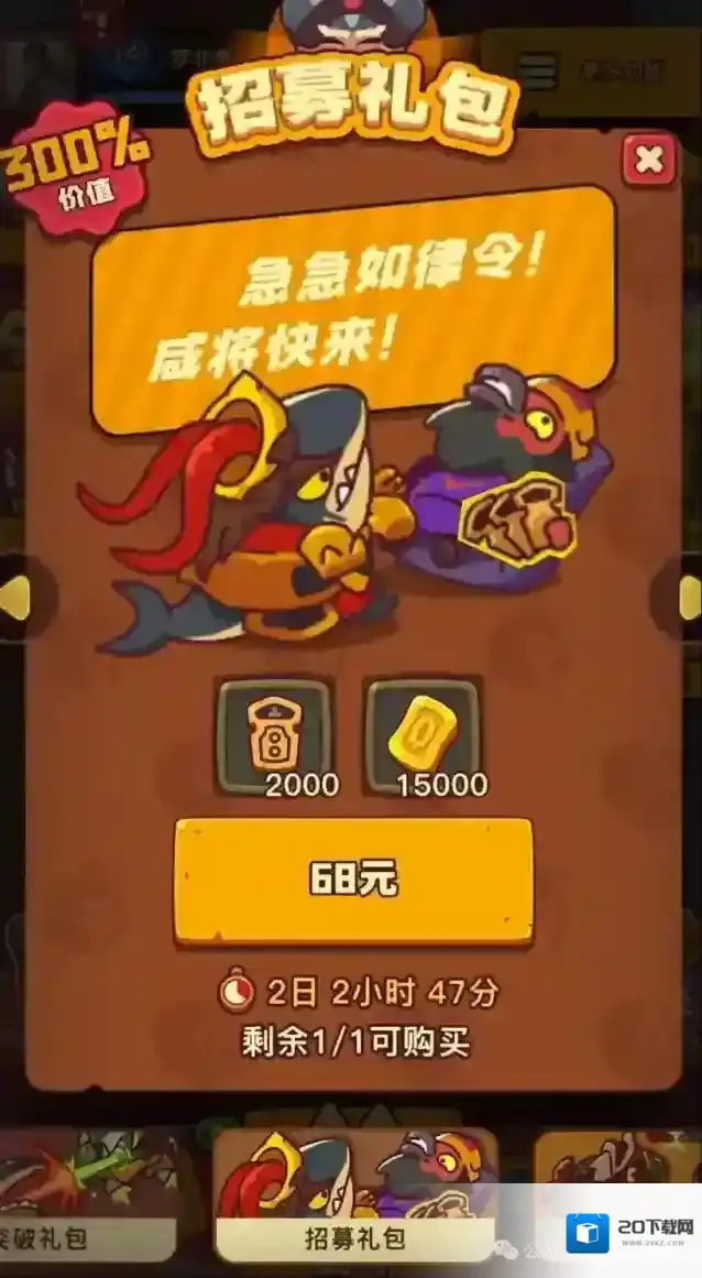 第二个招募礼包就是比较纯粹的招募令和金币了,性价比较低。