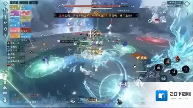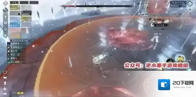 8、流程5:第二个组合技,所有人红圈+雪寂+相生蛊+野利白妙和分身AOE攻击。安全区的位置就在我们前面拉冰墙的两端,我们这里标点是3和4,走位就是3→4→3