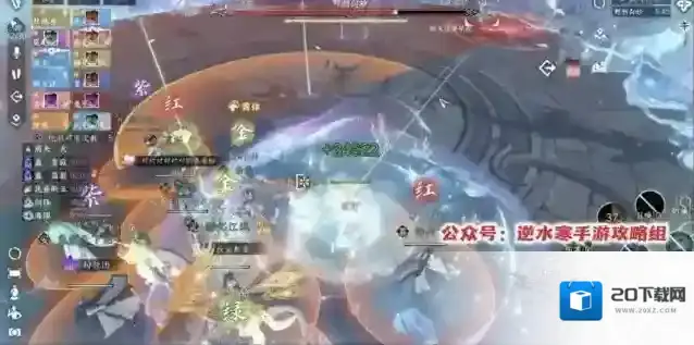 11、流程8:史诗·终焉怒绽,白妙跳中引导全屏大招,让随机4组玩家生成连线,同时依次生成4组不同颜色的圈。