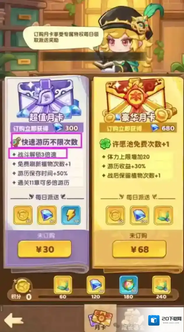 大月卡战斗结束后会多保留1个植物,这个也很有用,有些过不去的关卡,说不定靠着刷植物就过去了,看个人经济情况选择购买