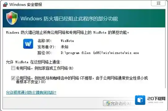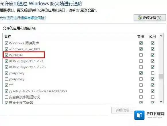 开始 – 控制面板 – 系统和安全 – Windows 防火墙 – 左侧列表的“允许程序或功能通过 Windows 防火墙 – 更改设置或允许运行另外一个程序 – 将为知笔记添加到允许的程序列表,并注意将网络类型都要勾选- 重新启动为知笔记 即可。
