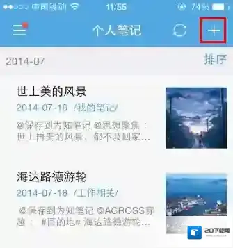 打开为知笔记 iPhone 客户端,长按笔记列表右上角的 + 号