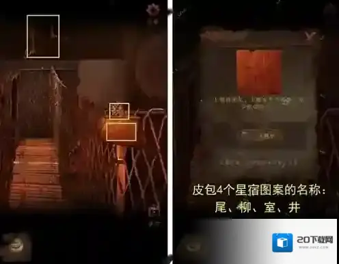 4、我们结合星宿图线索,获得密码:尾柳室井,使用密码即可打开皮包。