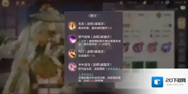 首先是蔡文姬,这个武将大家都知道,我就不放图了,毕竟现在人人都能白嫖了,提供全团5%免伤,放怒后给攻击最高友方提供15%攻击力,生命最高友方15%防御,属于很优秀的工具人。后期在貂蝉到五星后,将蔡文姬更换为貂蝉。
