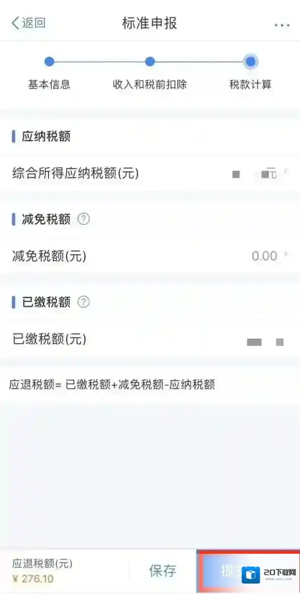 6、数据系统将自动计算您本年度综合所得应补/退税额,点击提交申报。