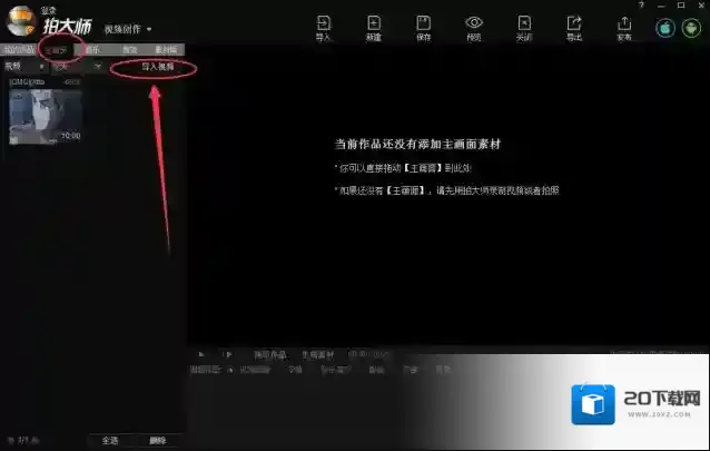 2、接着我们在“主画面”中点击“导入视频”并将我们想要添加图片的视频添加进来;
