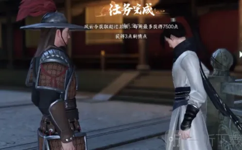 4、交付个杨志之后我们就可以完成任务了,任务完成之后我们可以获得3个剧情点,风云令、燕云泽、五韵谣、1000交子袋;