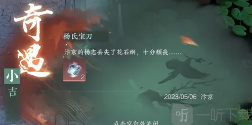 5、任务完成之后呢,我们还会有一段的剧情对话,大家完成对话之后我们会显示奇遇任务小吉-杨氏宝刀已经完成;