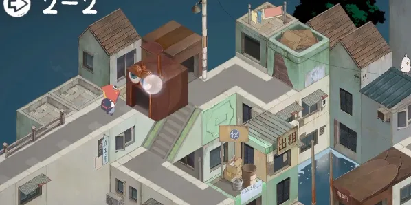 2、接着我们下楼梯收集棕色的房子,然后原路返回来到该位置后,将棕色房子拖动至此处,通过后抵达终点即可通关。