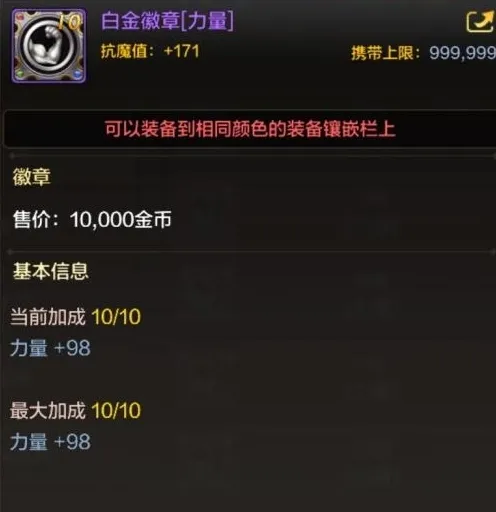 增加的属性银色徽章有7种:力量、智力、体力、精神、攻击速度、移动速度、释放速度,每种增加对应各自属性的数值。