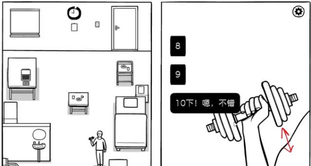 娱乐时间,点击打开箱子,点击哑铃,向上拖动10次就结束了,合上箱子。