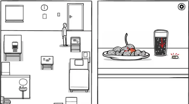 完成测试会有晚餐的推车送进来,我们走向推车,长按吃面,完成晚餐,吃药。