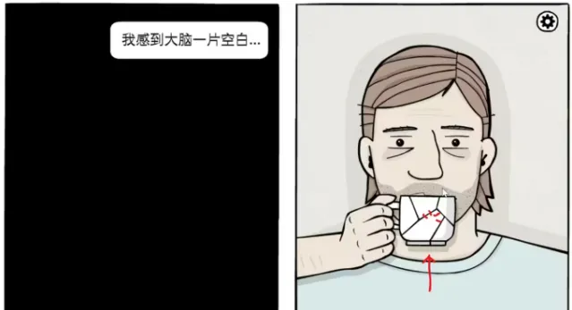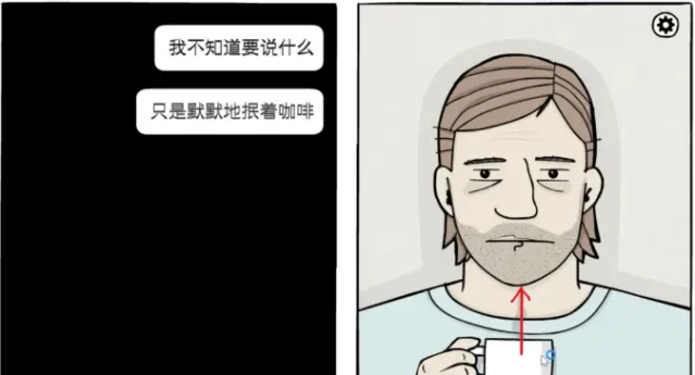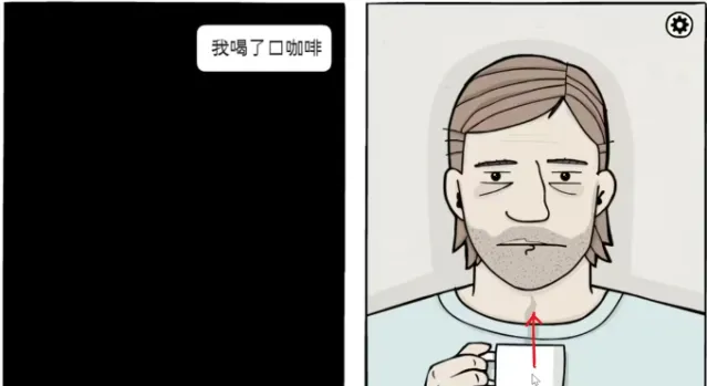 向上拖动咖啡,咖啡杯碎了,继续点击,到了第二天。