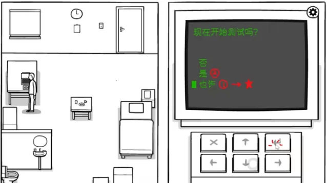 走到电脑前,先点击向下的按键,到“也许”,点击回车,完成成就[★];再向上到“是”,开始记忆训练。分别是[甜甜圈]、[箱子]、[植物]、[相框]、[音箱]、[硬币]、[鸟]。