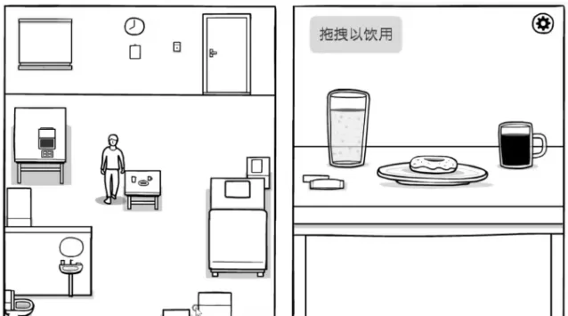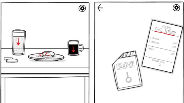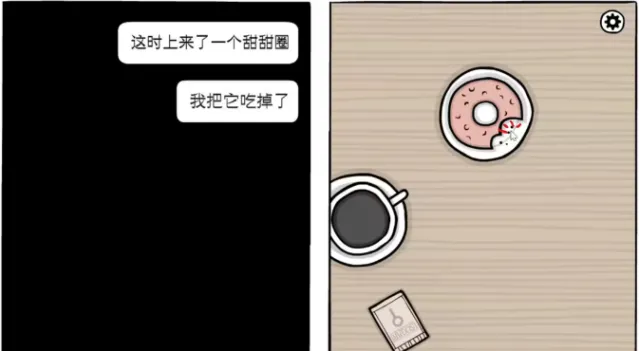 先到早餐桌完成今天的早餐。先点一下左下角,是一袋糖和一个消费单,可以知道Hill最喜欢的咖啡厅。退回前一个界面,点击甜甜圈直至吃完,饮料从液面往下拖直至喝完。