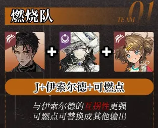 1、燃烧队:J+伊索尔德+可燃点