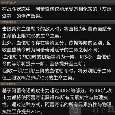 2、遗望之契:当处于盈血或狂妄之祸状态下增加火元素伤害。