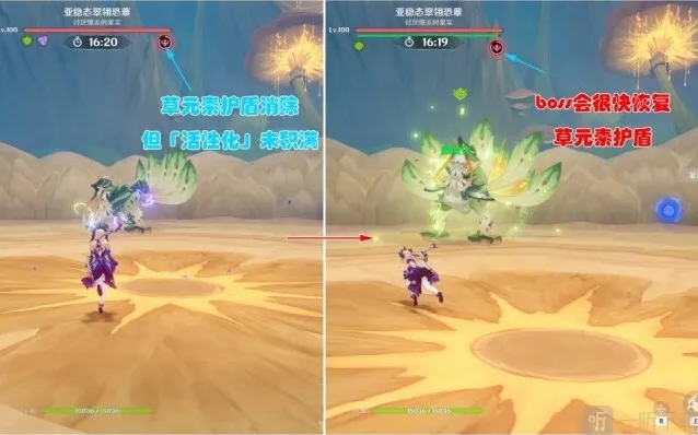 当boss草元素护盾被击破,但「活性化」未积满时,boss会很快补充全部草元素护盾