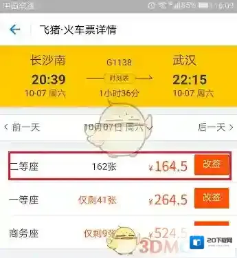 第三步点击进去之后,会看到订单的详细情况,点击改签,如下图所示: