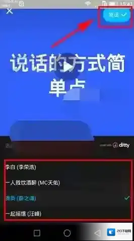 3)最后选择相关音乐,点击发送即可用该音乐唱出自己编辑的内容啦~(如下图)