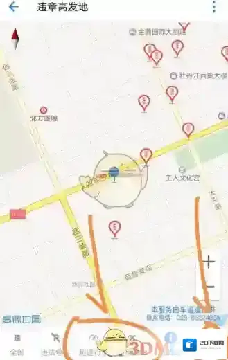 如果要查看超速行驶或者违反禁令或者其他违章高发地,点按箭头指向的标志即可。