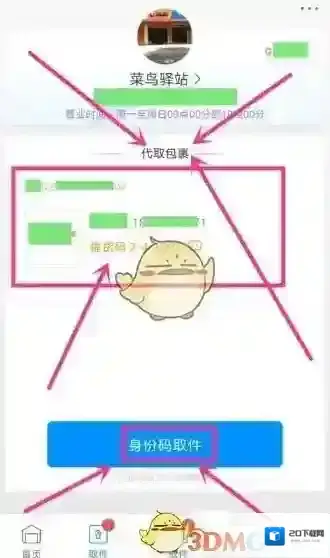 然后你的好友打开他的菜鸟裹裹APP就可以看到你的快递代取信息,然后他使用自己的“身份码取件”即可,无需签名就可以取件。如图所示: