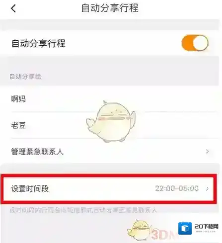 最后就是“设置时间段”,例如下班回家时间等,设置好之后,在时间段内坐车,紧急联系人都能第一时间收到,