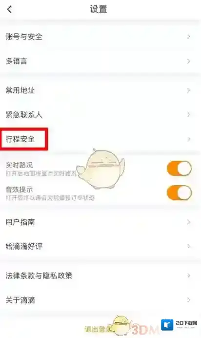 返回设置页面,点击“行程安全”,