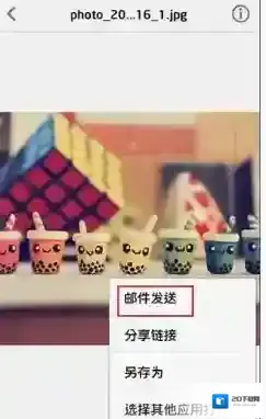 8、然后再出现的功能选择菜单中,点击“邮件发送”。