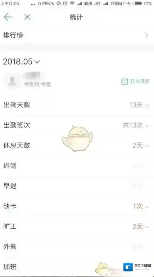 6、点击人名,可以看到这个人本月的总出勤情况记录。